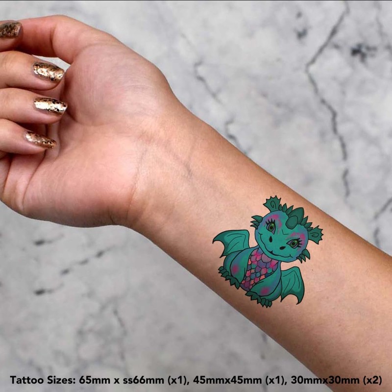 4 x 'Cute Dragon' Temporary Tattoos - Water Resistant, Skin-Safe, Non-Toxic Transfers, Mixed Sizes (TO00083410)