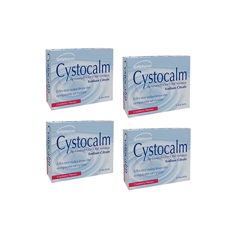 4 x Cystitis Relief from Burning Pain, Cystocalm 24 Sachets 4g Granules Cranberry