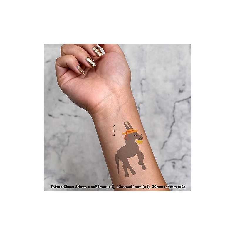 4 x ' Donkey ' Temporary Tattoos - Water Resistant, Skin-Safe, Non-Toxic Transfers, Mixed Sizes (TO00063442)