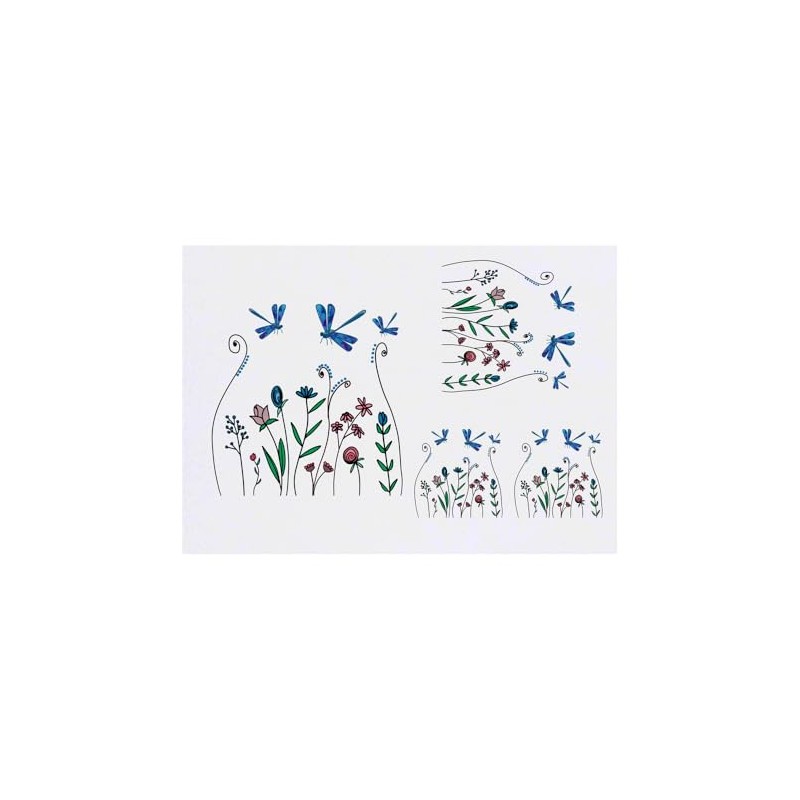 4 x 'Dragonflies In Wildflowers' Temporary Tattoos - Water Resistant, Skin-Safe, Non-Toxic Transfers, Mixed Sizes (TO00083592)