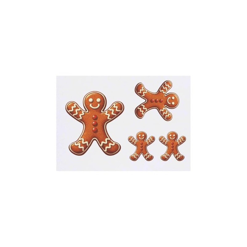 4 x 'Gingerbread Man With Red Buttons' Temporary Tattoos - Water Resistant, Skin-Safe, Non-Toxic Transfers, Mixed Sizes (TO00077466)