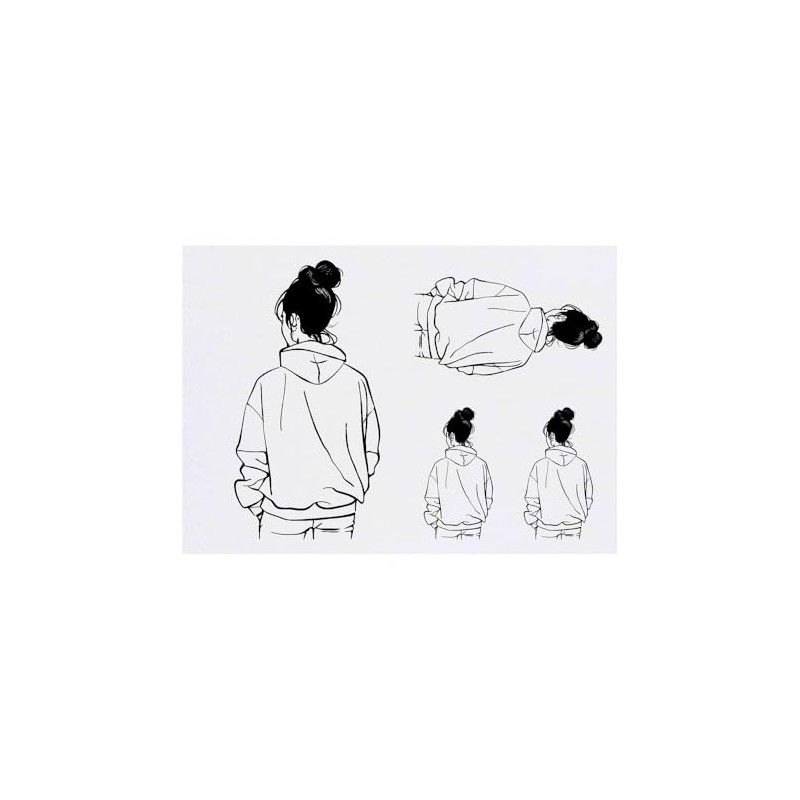 4 x 'Girl in Hoodie Back View' Temporary Tattoos - Water Resistant, Skin-Safe, Non-Toxic Transfers, Mixed Sizes (TO00076268)