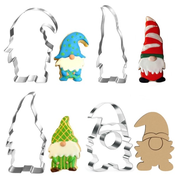 4 x Gnome Cookie Cutters, Christmas Cookie Cutters for Baking, Stainless Steel, Large Christmas Gnome