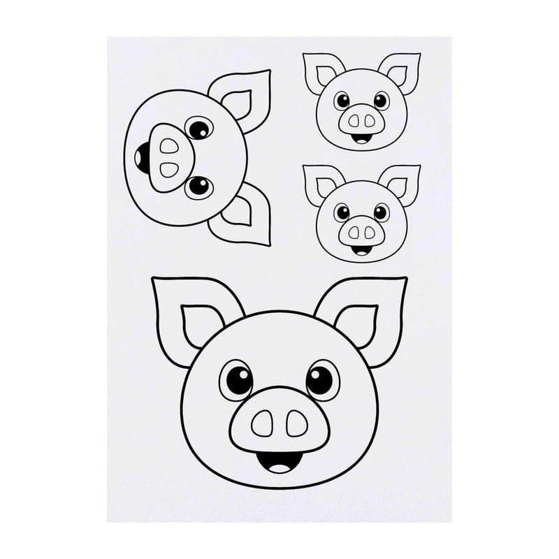 4 x 'Happy Pig Face' Temporary Tattoos - Water Resistant, Skin-Safe, Non-Toxic Transfers, Mixed Sizes (TO00063220)