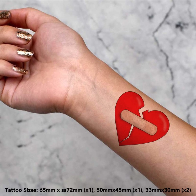 4 x 'Healing Broken Heart' Temporary Tattoos - Water Resistant, Skin-Safe, Non-Toxic Transfers, Mixed Sizes (TO00058250)