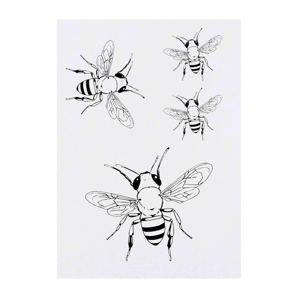 4 x 'Honey Bee' Temporary Tattoos - Water Resistant, Skin-Safe, Non-Toxic Transfers, Mixed Sizes (TO00074530)