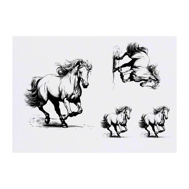 4 x 'horse' Temporary Tattoos - Water Resistant, Skin-Safe, Non-Toxic Transfers, Mixed Sizes (TO00062456)