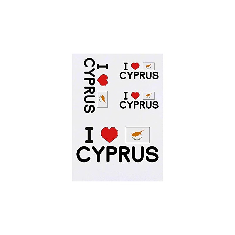 4 x 'I Love Cyprus' Temporary Tattoos - Water Resistant, Skin-Safe, Non-Toxic Transfers, Mixed Sizes (TO00053163)