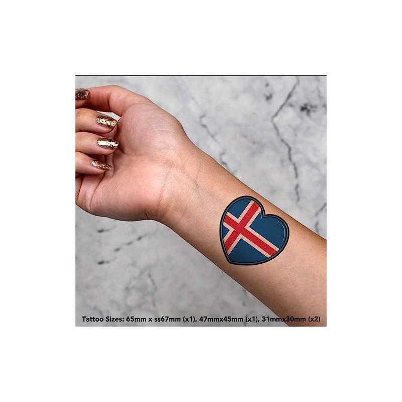 4 x 'Iceland Flag Heart' Temporary Tattoos - Water Resistant, Skin-Safe, Non-Toxic Transfers, Mixed Sizes (TO00061626)