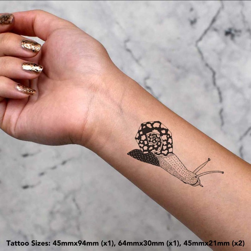 4 x 'Jazzy Snail' Temporary Tattoos - Water Resistant, Skin-Safe, Non-Toxic Transfers, Mixed Sizes (TO00005583)