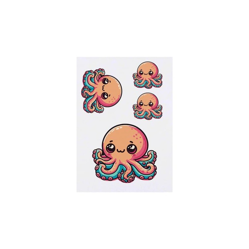 4 x 'Kawaii Octopus Baby' Temporary Tattoos - Water Resistant, Skin-Safe, Non-Toxic Transfers, Mixed Sizes (TO00070696)