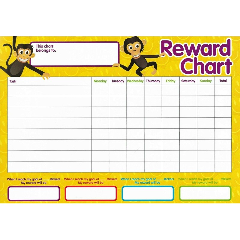 4 x Kids Reward Chart Includes 225 Childrens Stickers