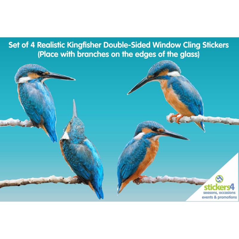 4 x Kingfisher Bird Window Stickers for Glass - Double Sided Decorative Anti Bird Strike Window Stickers
