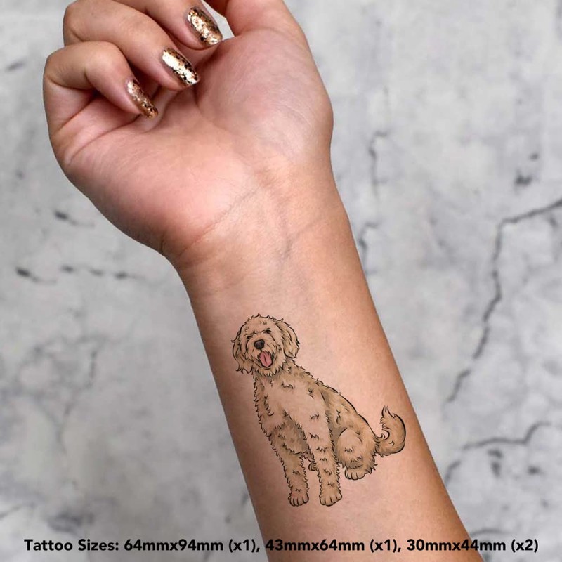 4 x 'Labradoodle' Temporary Tattoos - Water Resistant, Skin-Safe, Non-Toxic Transfers, Mixed Sizes (TO00045485)