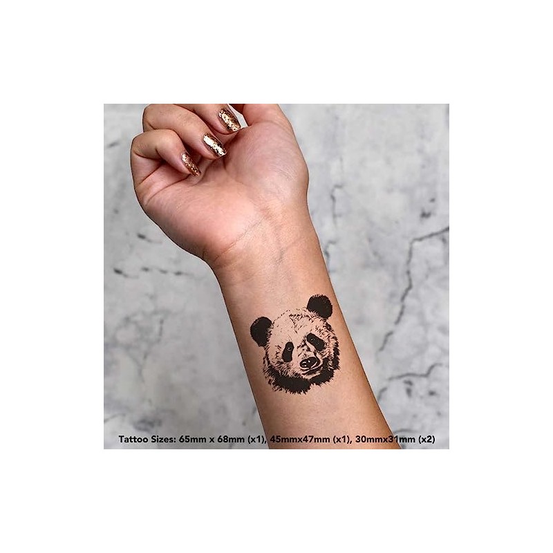 4 x 'Panda' Temporary Tattoos - Water Resistant, Skin-Safe, Non-Toxic Transfers, Mixed Sizes (TO00061428)