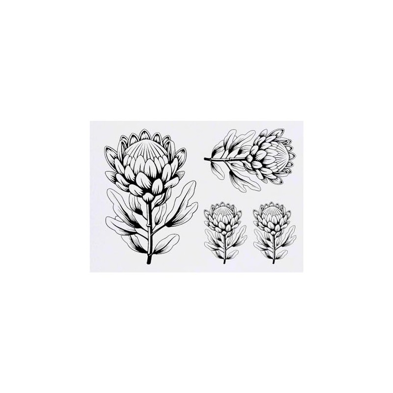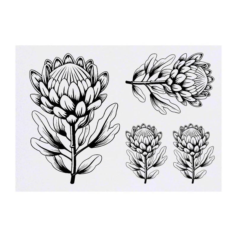 4 x 'Protea Flower' Temporary Tattoos - Water Resistant, Skin-Safe, Non-Toxic Transfers, Mixed Sizes (TO00073410)