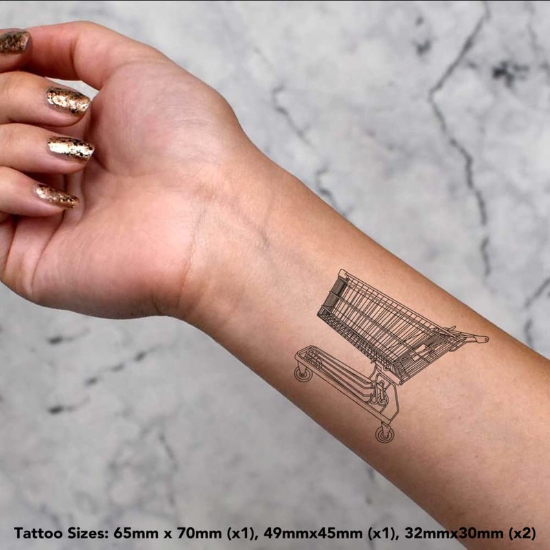 4 x 'Shopping Trolley' Temporary Tattoos - Water Resistant, Skin-Safe, Non-Toxic Transfers, Mixed Sizes (TO00057880)