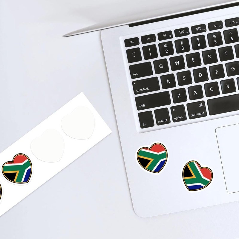 4 x Small 50mm 'South Africa Flag Heart' Permanent Sticker Decals for Cars/Windows/Bins/Walls etc (DW00093168)