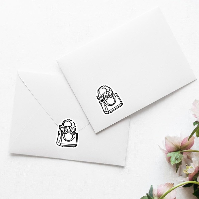 4 x Small 50mm 'Toy Poodle in a Handbag' Permanent Sticker Decals for Cars/Windows/Bins/Walls etc (DW00111340)