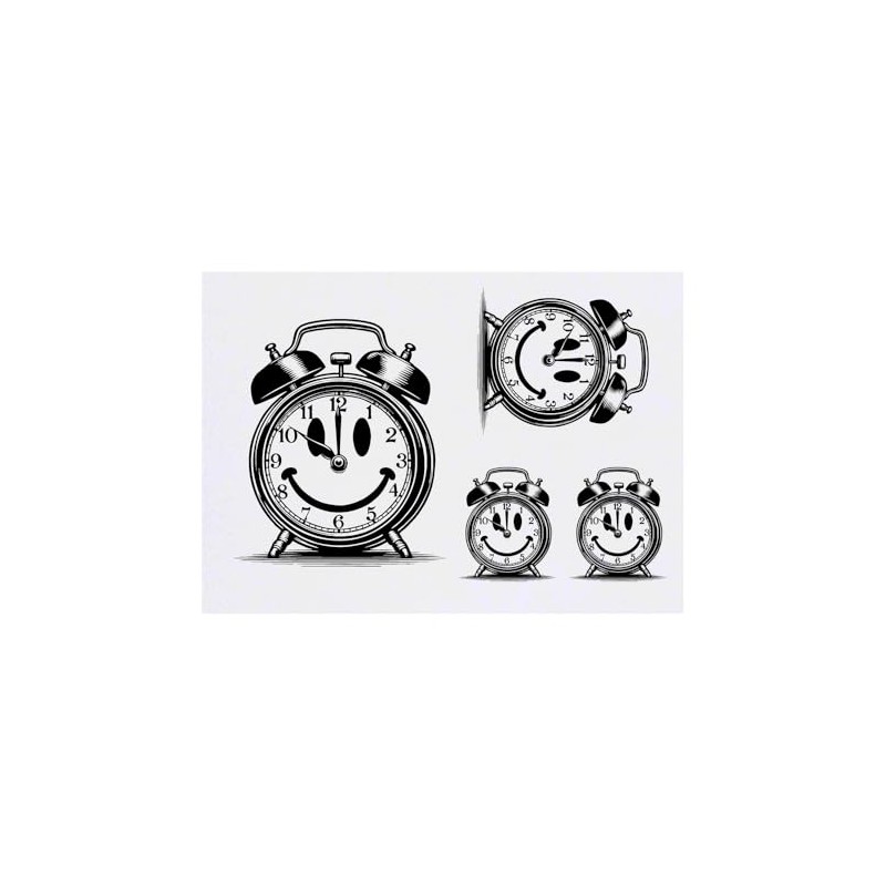 4 x 'Smiling Alarm Clock' Temporary Tattoos - Water Resistant, Skin-Safe, Non-Toxic Transfers, Mixed Sizes (TO00085468)
