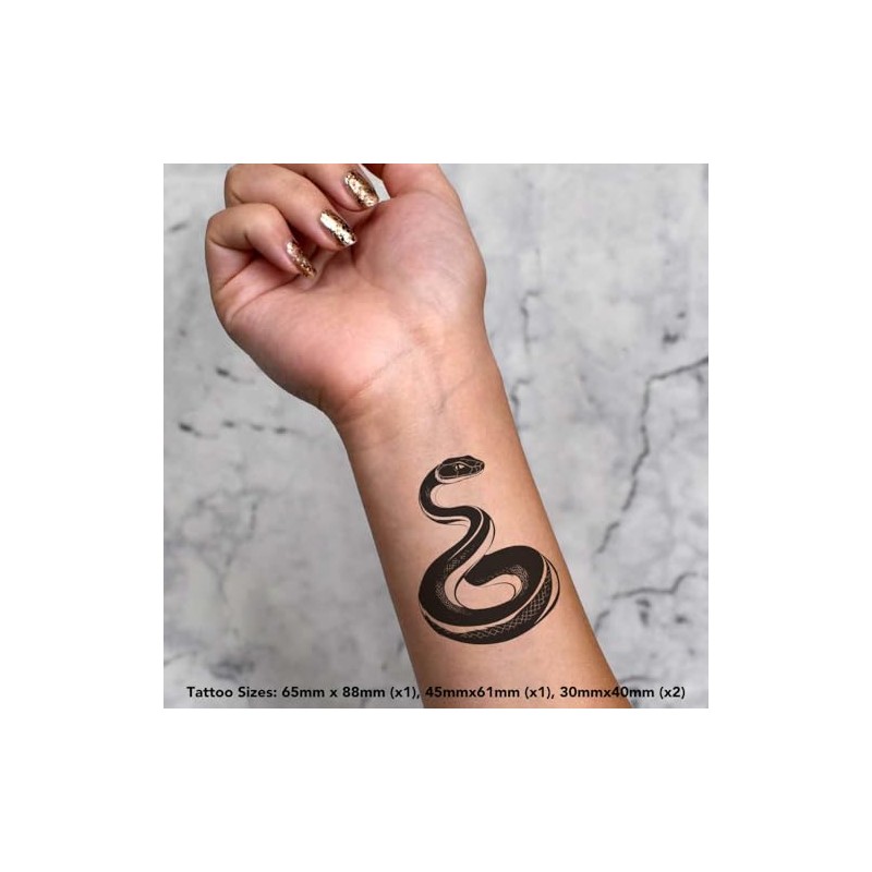 4 x 'Snake Sitting' Temporary Tattoos - Water Resistant, Skin-Safe, Non-Toxic Transfers, Mixed Sizes (TO00079108)