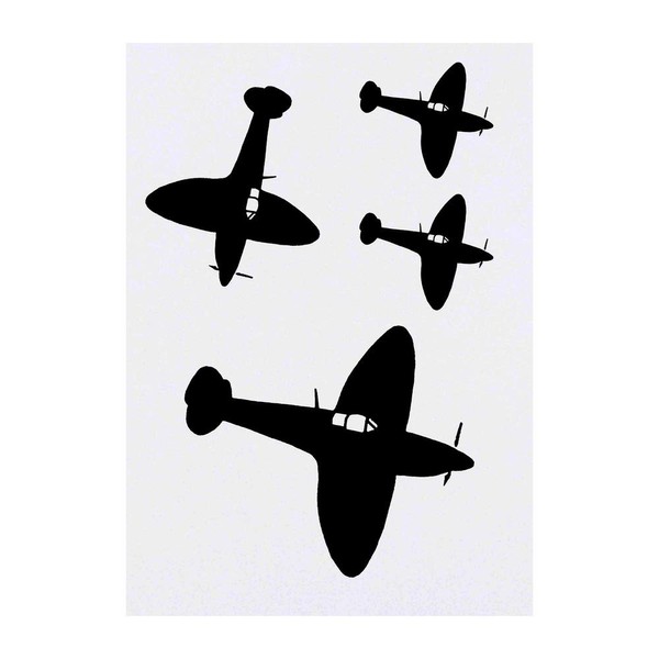 4 x 'Spitfire Plane' Temporary Tattoos - Water Resistant, Skin-Safe, Non-Toxic Transfers, Mixed Sizes (TO00005641)