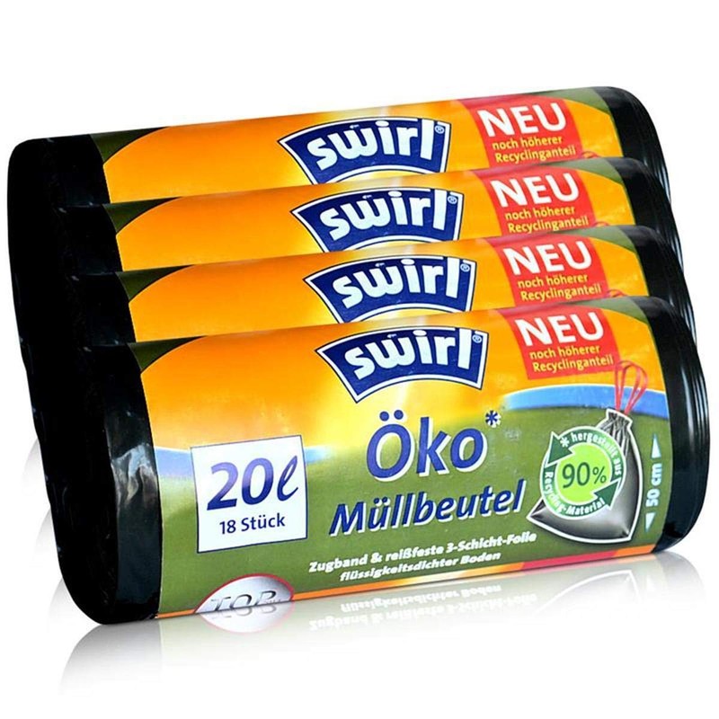 4 x Swirl Eco Bin Liners 20 L (Pack of 18/Roll) with Drawstring