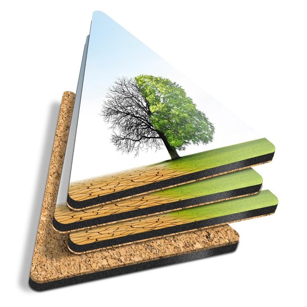 4 x Triangle Coasters - Climate Change Tree Desert Dry Green Cork Backed MDF Glossy Tea Coffee Accessory #52719