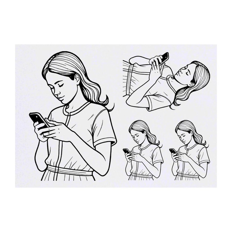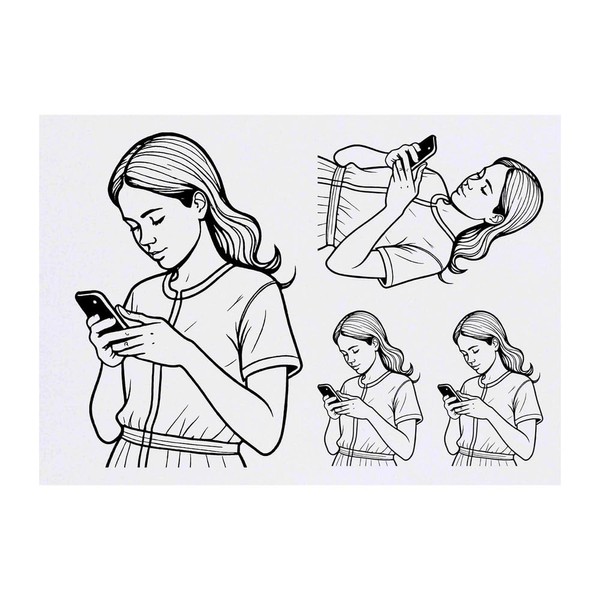 4 x 'Woman Using A Smartphone' Temporary Tattoos - Water Resistant, Skin-Safe, Non-Toxic Transfers, Mixed Sizes (TO00069734)