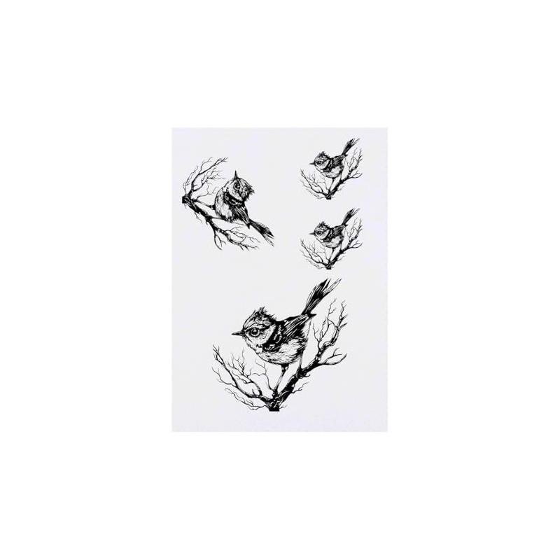 4 x 'Wren Bird on Branch' Temporary Tattoos - Water Resistant, Skin-Safe, Non-Toxic Transfers, Mixed Sizes (TO00074552)