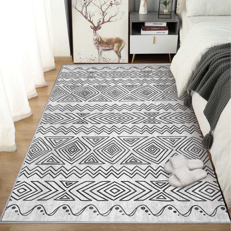 - [Machine Washable & Easy Clean] Our stain resistant bedroom rugs are washable. Easy to clean and maintenance. For daily care, sweeping robots can move freely to clean the low pile carpet, vacuum cleaner or wipe is also OK. If the washable area rug needs deep clean, leave it to washing machine and then air dried, convenient and efficient. Avoid using bleach, spin-dry and high-temperature ironing as it may harm the fabric!.