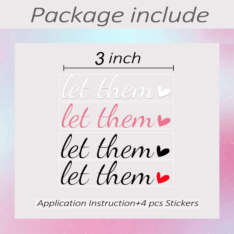- Mirror Decal: Set of 4 "Let Them" rearview mirror decal for your car.Elevate you with this affirmation stickers.The vanity mirror stickers will also serve as a gentle reminder to appreciate your value and stay motivated.It is car accessories for women