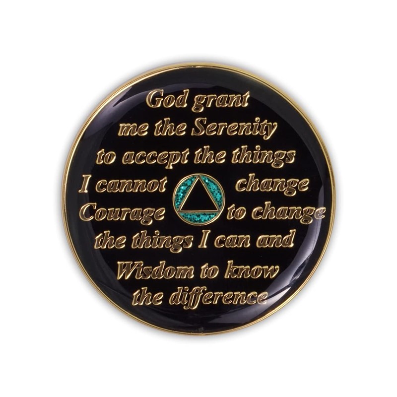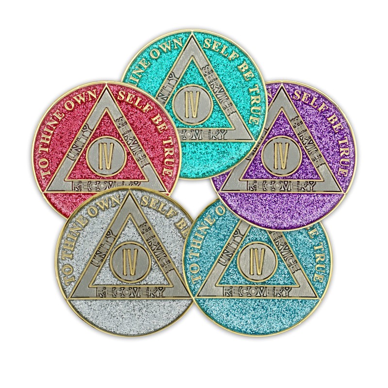 4 Year Sobriety Coin | Glitter Triplate AA Chip Recovery Anniversary Token (Aqua)