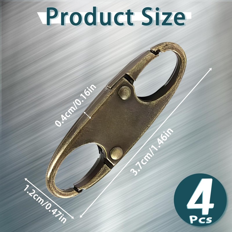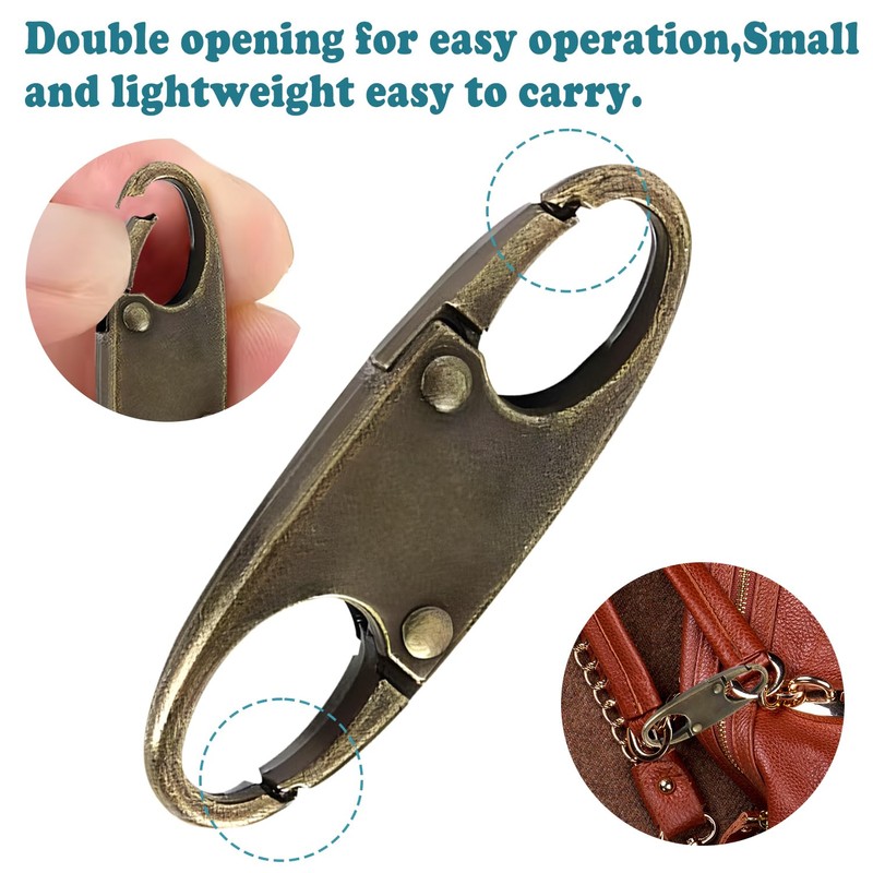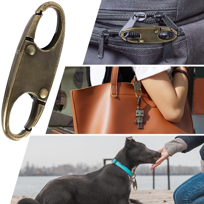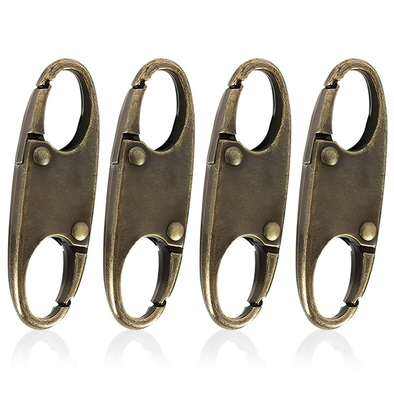 4 Zipper Fasteners for Backpacks, Anti-Theft, Removable Zipper Clips, Small Zipper Clips, Carabiner for Separating for Travel, Camping and Outdoor (Bronze)