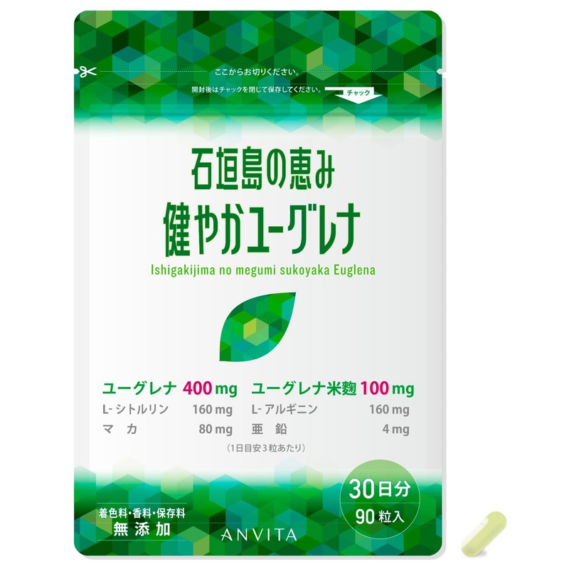40代からのサプリメント 石垣島の恵み 健やかユーグレナ(90粒) ユーグレナ米麹・マカ・亜鉛・L-シトルリン・L-アルギニン