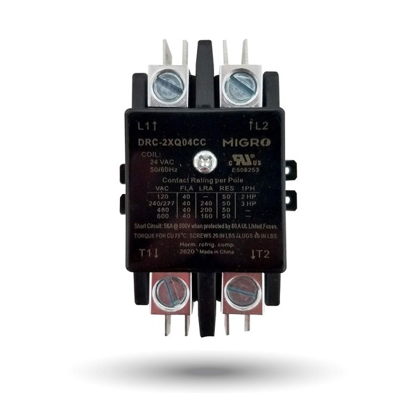 Migro 40 Amp 2 Pole 24V HVAC Refrigeration Contactor, N.O. Contacts, 50A NEMA