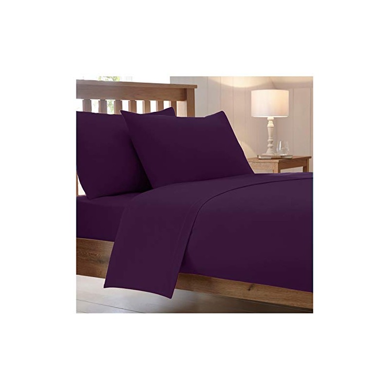40 Cm / 16" Inch Extra Deep Luxury Combed Poly Cotton Bed Fitted Sheets Non Iron Percale Plain Sheet Bedding(Aubergine, King)