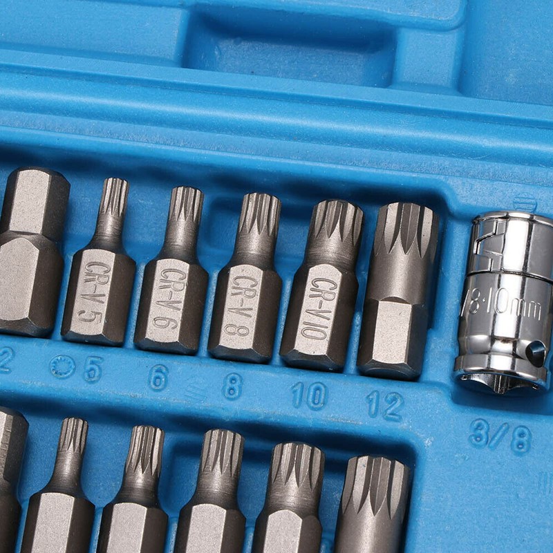 40 in 1 Spline& Hex& Torx Star Bit Socket Set 3/8 1/2''Diameter Long Short Reach Allen Key with Storage Box