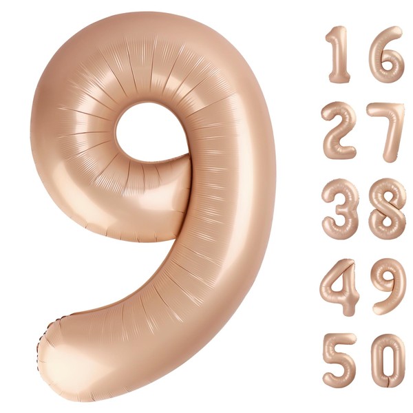 40 Inch Caramel Balloon Number 9,Jumbo Mylar Foil Helium Balloon for 9 19th 29th 39th 90th 99th Digital Balloons for Birthday Party,Wedding Anniversary Party Decorations