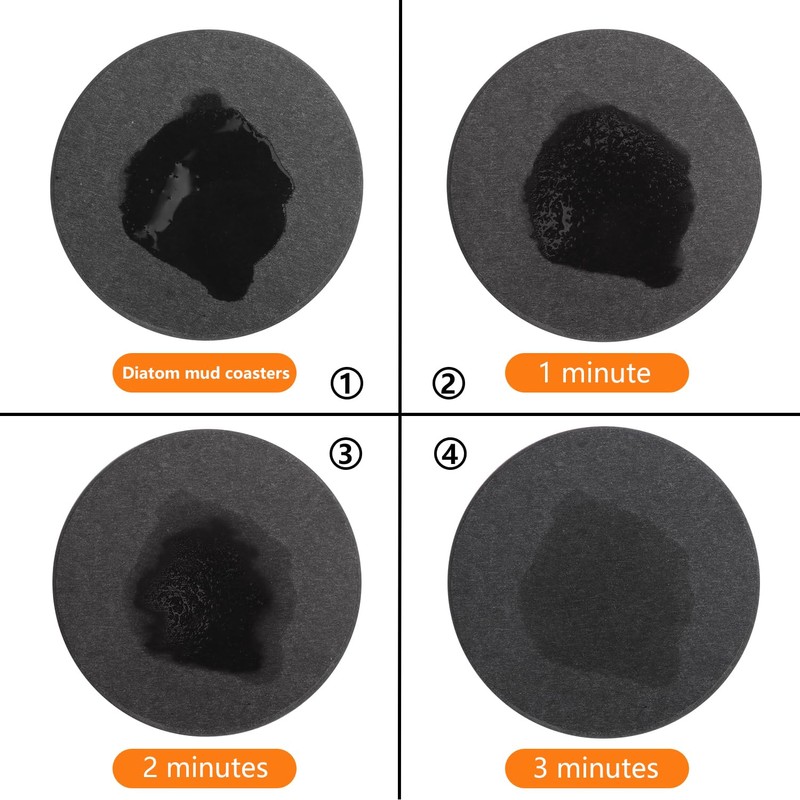 - 【Superb Water Absorption】 KUKLIPJIM Diatomaceous Earth Coaster with its highly absorbent diatomite material quickly sips up any water and moisture, leaving your countertop tidy and dry. Small holes within the diatomite provide incredible water absorption, making the bathroom countertop more dry and tidy.