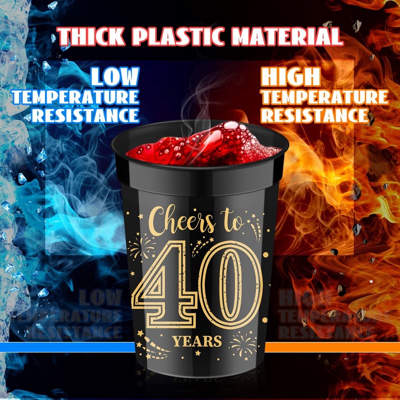 - Distinctive Designs: the plastic stadium cups are printed with [cheers to 40th years], and adopt black and gold colors, bold and classic, which can easily set alight the party atmosphere, and leave a deep impression on your guests with a fun cohesive theme