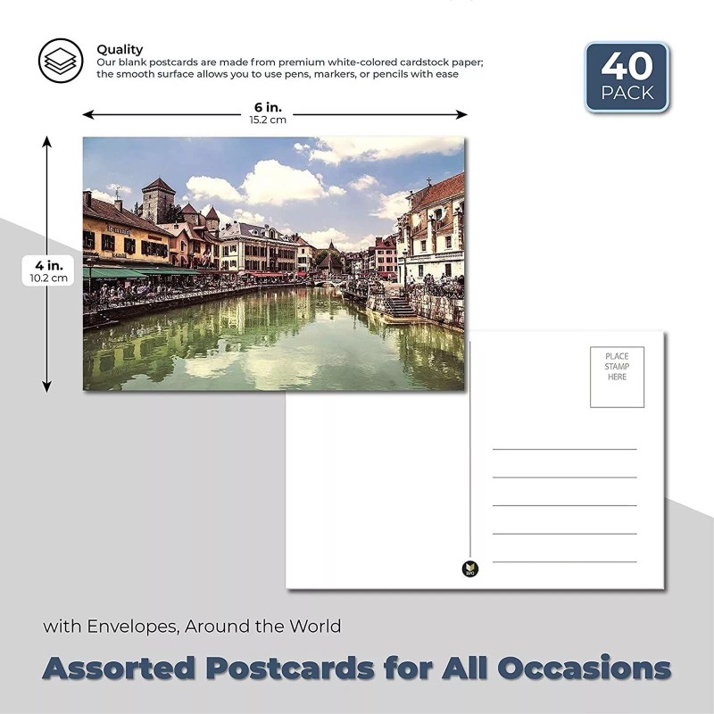 - 40 Pack Bulk Travel Postcards From Around the World for Mailing, 4 x 6 In