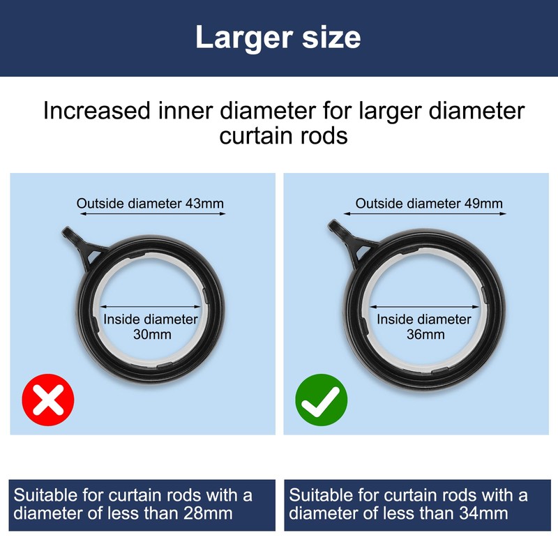 - [Sturdy Curtain Ring]: Curtain ring are nice polished and surface without burrs, not easy to deform, Built-in nanoscale material, the curtain rings can smoothly slide on curtain pole and keep the pole with less friction.