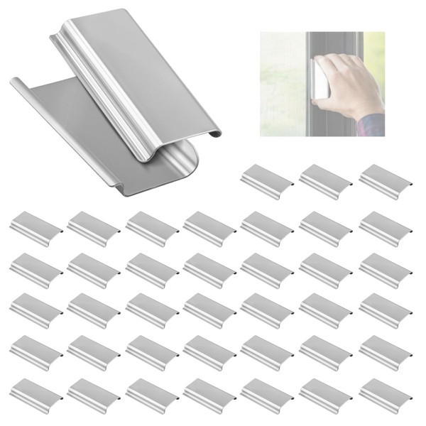 40 Pack Window Screen Pull Tabs, Window Screen Lift Tabs Replacement Aluminum Spline Channel Lift Tab Clips (C Shape, Sliver)