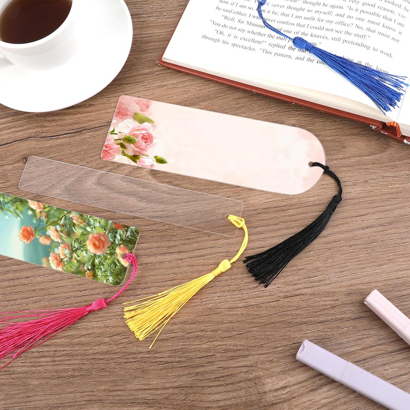 - 【Made Material】Acrylic bookmark blanks color are made of plastic, has double-layer protective film, beautiful artificial tassels.