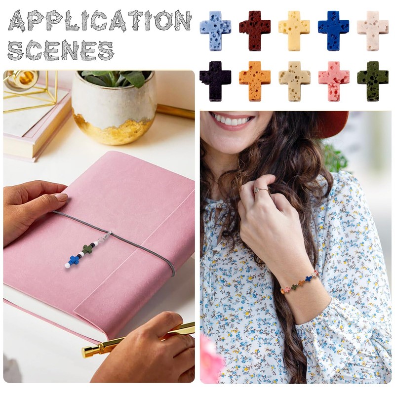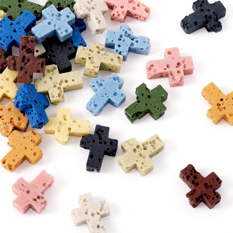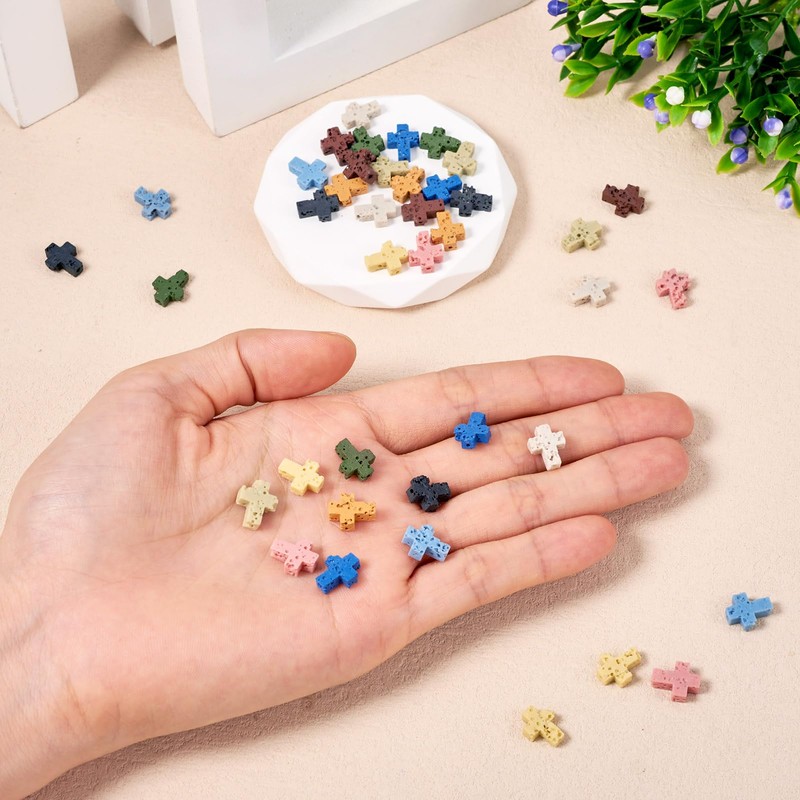 - What You Get: You will receive 40 pcs of cross lava rock beads in 10 colors, 4pcs/color. Size is about 9 mm/0.35 inch wide, 11 mm/0.43 inch long, 3 mm, hole: 1mm