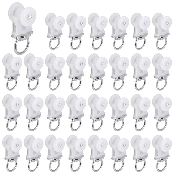 40 Pcs Curtain Track Roller Hooks Curtain Rail Ceiling Gliders Set Dual Wheel Roller Carriers for Ceiling Mounted Curtain Track