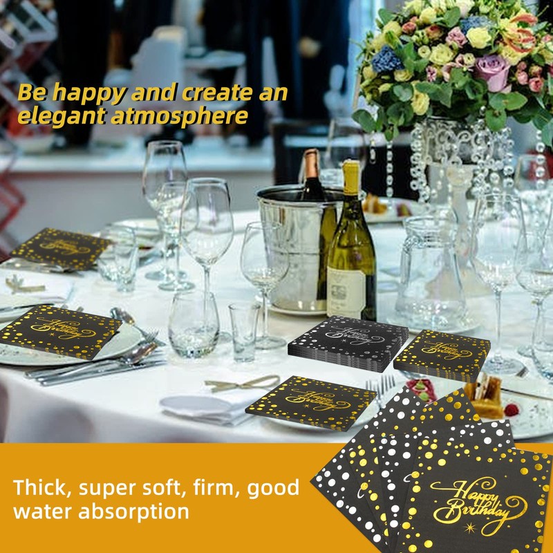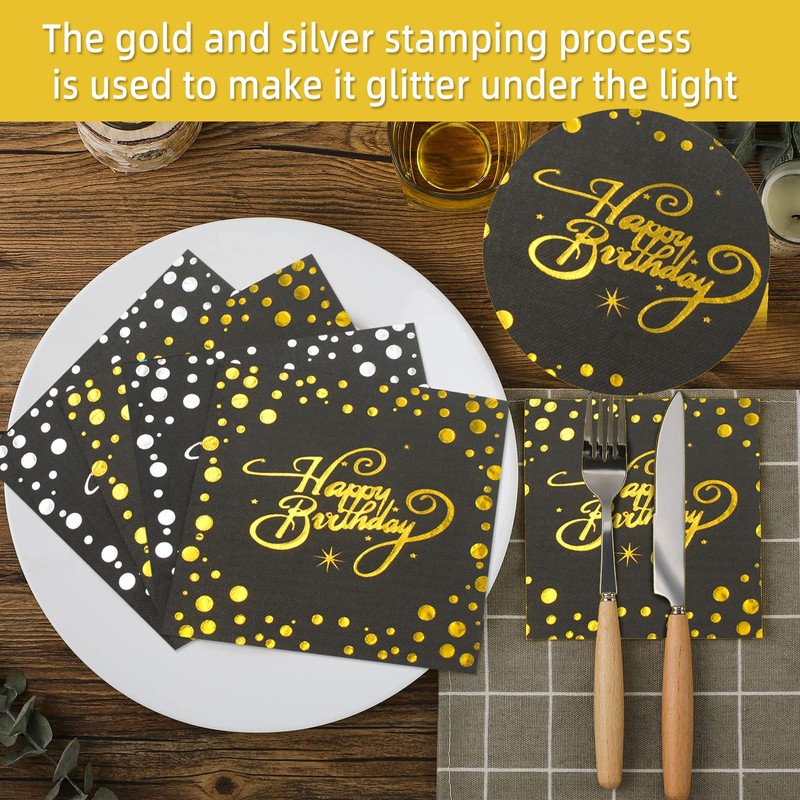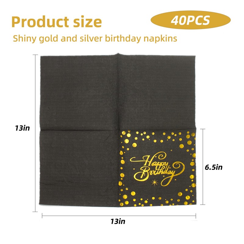 - đăSufficient Quantity to Useă: you will receive 40pcs happy birthday napkins. Real foil design that shines in the light. Food is safe. Enough for your birthday party decoration and replacement needs, which can make your guests happy and create an elegant atmosphere