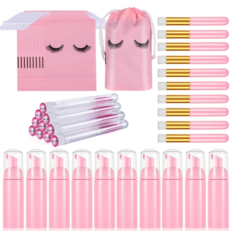 - 【Package Include】 You will receive 40 pieces lash shampoo brush and Bottle set, includes 10 PCs eyelash brushes for cleaning, 10 PCs mascara tubes and wands, 10 PCs lash shampoo foam bottles and 10 PCs small drawstring bags. Perfect for women who need care after eyelash extension.