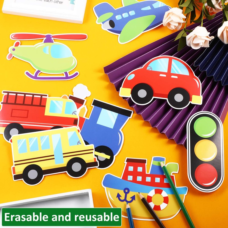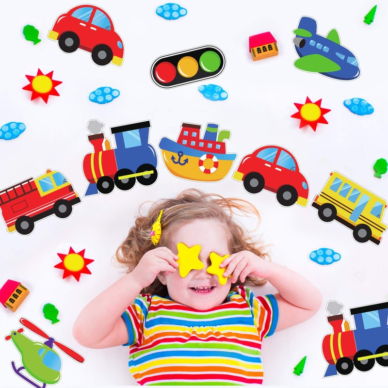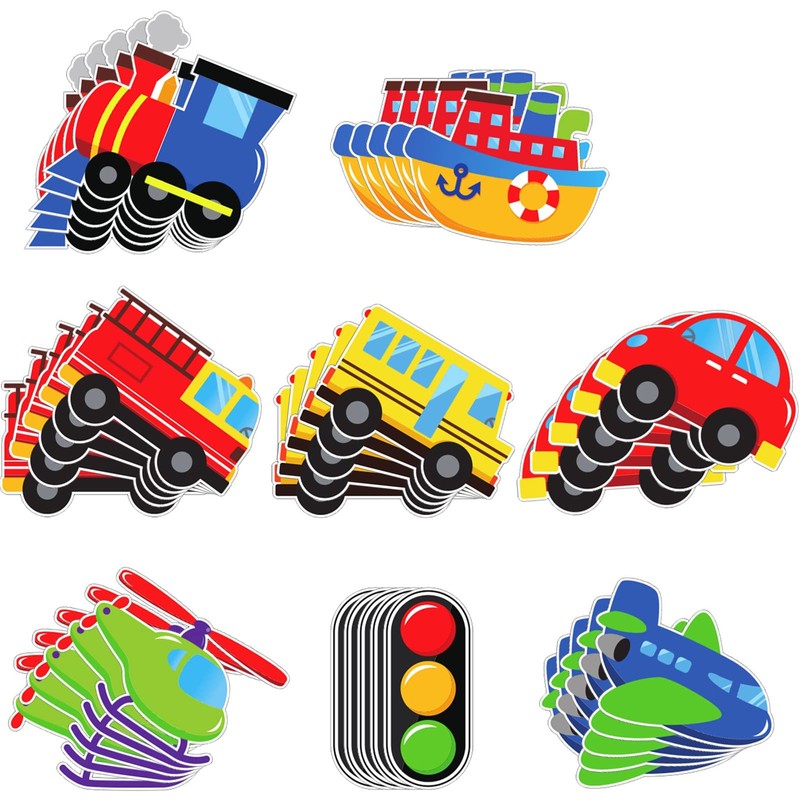 - Package includes: 40 pieces transportation theme cutouts, 8 cute designs, each design has 5 pieces, enough amount to your party decorations. Come with 40 pieces glue point dots, convenient to stick cute traffic cutouts decorations to walls
